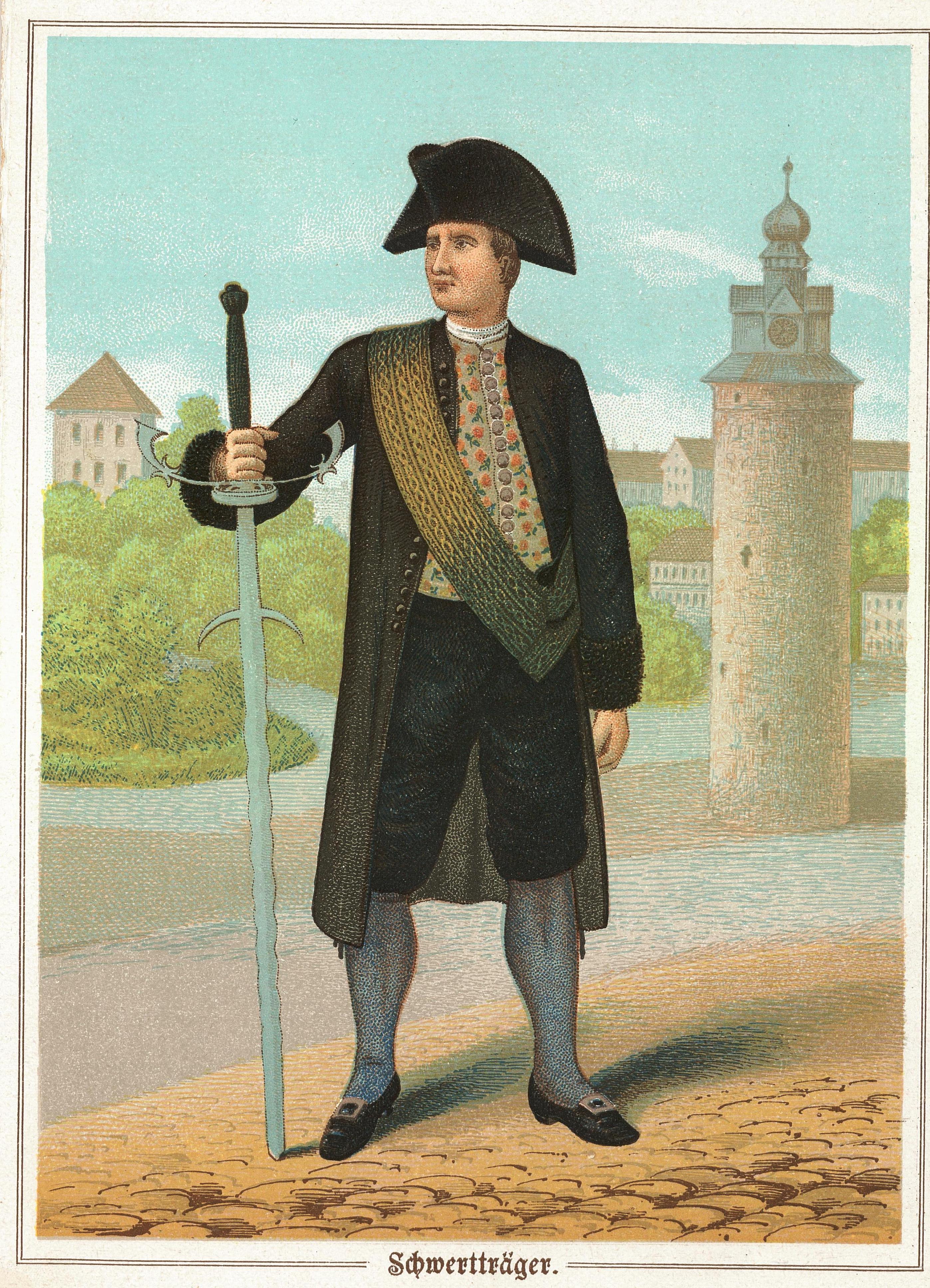 Anno 780 stand Karl der Große am Klostertor. An der Mauer stand Karl der Große, als plötzlich eine Rotte bewaffneter sächsischer Knechte auf ihn zustürmte, um ihn gefangen zu nehmen. Karl stellte sich in Position und schlug mit seinem Schwert in einem weiten Halbkreis vor sich. Da bekamen die Sachsen Angst und blieben wie erstarrt stehen. Zur gleichen Zeit waren auf der anderen Seite acht Halloren an der Saale, um ihre Hosen zu waschen, die bei einer vorangegangenen Auseinandersetzung blutig geworden waren. Der größte von ihnen sah den Kaiser Karl und die sächsischen Knechte. Er schrie: „Kaiser Karl ist in Gefahr!“ Und alle acht Männer stürmten los, direkt auf die sächsischen Krieger zu. Hier standen die acht bewaffneten, gepanzerten Sachsen mit ihren Schwertern – und dort kamen acht Halloren, ohne Hosen, mit nackten Beinen, Hüte auf dem Kopf und nichts weiter als ihre acht kräftigen Fäuste. Kaiser Karl sah das und musste lachen. Da blickten sich die gepanzerten Sachsen um, begannen ebenfalls zu lachen, stießen ihre Schwerter in den Sand, weil sie sich vor Lachen die Bäuche halten mussten. Und dann – plötzlich – rannten die acht Halloren los. Mit ihren acht Paar nackten Beinen stürmten sie auf die Sachsen zu. Acht Paar raue Hände packten die Schwerter aus dem Sand. Wie auf Kommando wirbelten acht Hiebe durch die Luft.