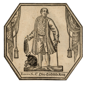 Im Jahr 1722 fällt der Hallore in einer Garderobe auf, die seiner heutigen Festkleidung sehr ähnelt. Eine Abbildung zeigt ihn im floral verzierten Hemd, mit kurzer Knopflochreihe und Stehkragen. Sein Mantel hat eine lange durchgehende Knopfreihe, die erst später kürzer wird. In dieser festlichen Kleidung steht er beispielhaft für die Einwohner des damals weitläufigen „Obersächsischen Kreises“ im „Neueröffneten Amphi-Theatrum, Worinnen nach dem uns bekanten gantz Welt-Kreis, Alle Nationen nach ihrem Habit, in sauberen Figuren repräsentiret.“.