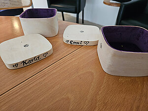 Für die Jahresausstellung 2024 baute eine Gestalterin eine Nelkenkrone nach. Sie ist als Anschauungsexemplar zum Anfassen in einem Schaukasten ausgestellt.